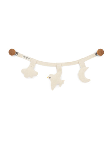 This enchanting stroller chain, featuring the Ole Lukøje bird, cloud, and moon, is designed to captivate and soothe. Perfect for creating peaceful moments at home or bringing a touch of magic to sleep on the go.